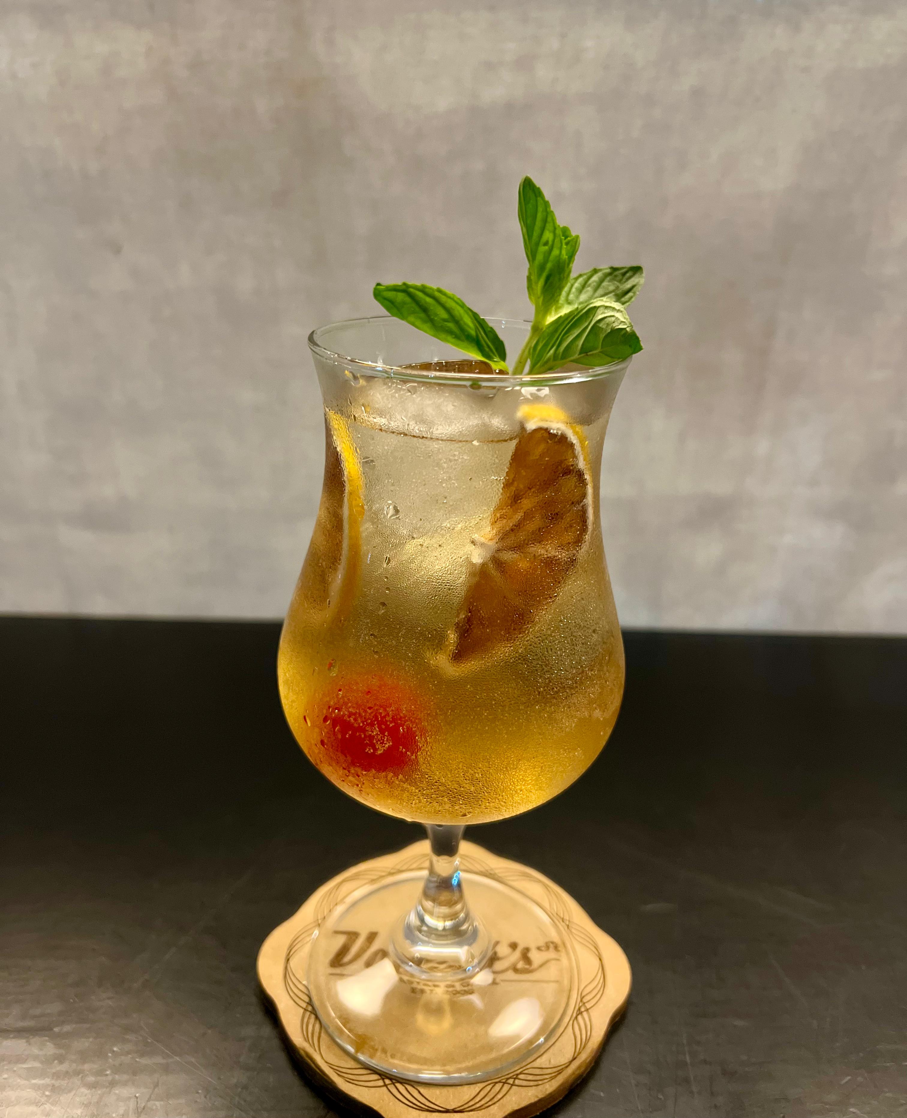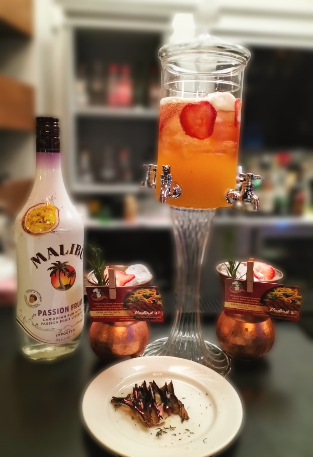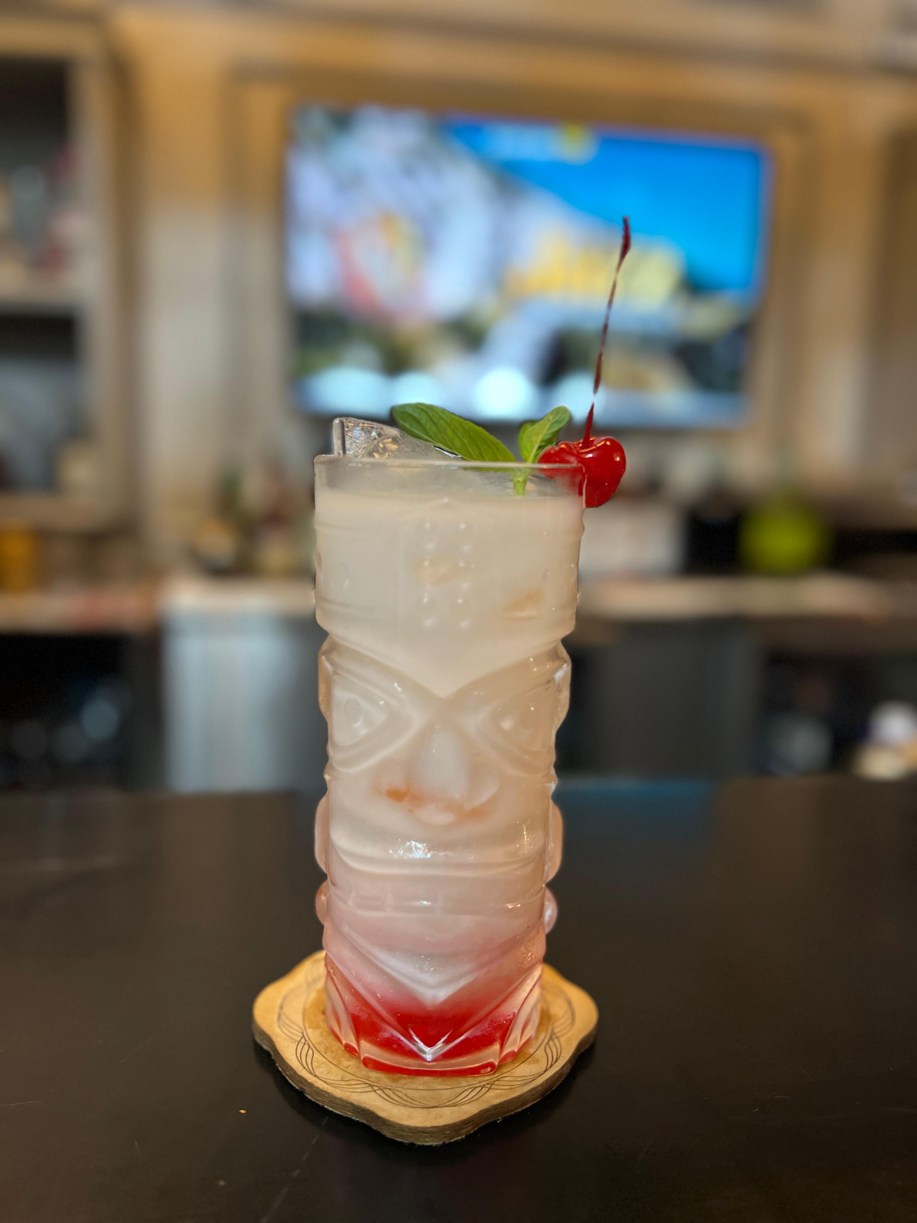 Ideal para compartir. Hecha a base de ron blanco, cooler de durazno, jugo de piña y mango. Con un exquisito ahumado de canela.