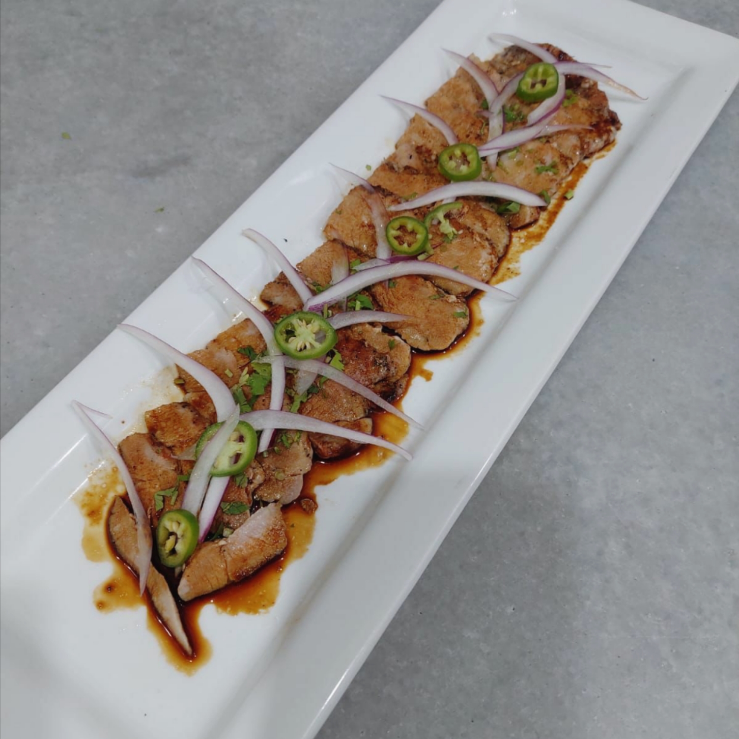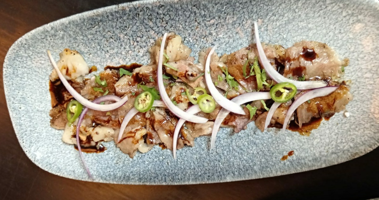Sazonado con limón, ponzu, chile serrano, cilantro, cebolla morada y aceite de trufa.